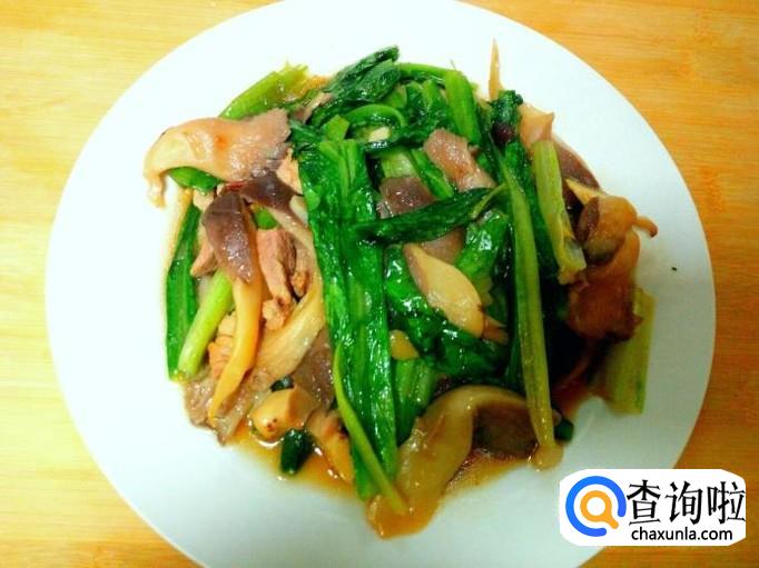 鲜蘑 200克,油麦菜 150克,猪肉 100克。