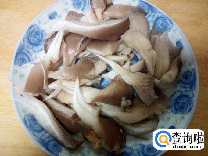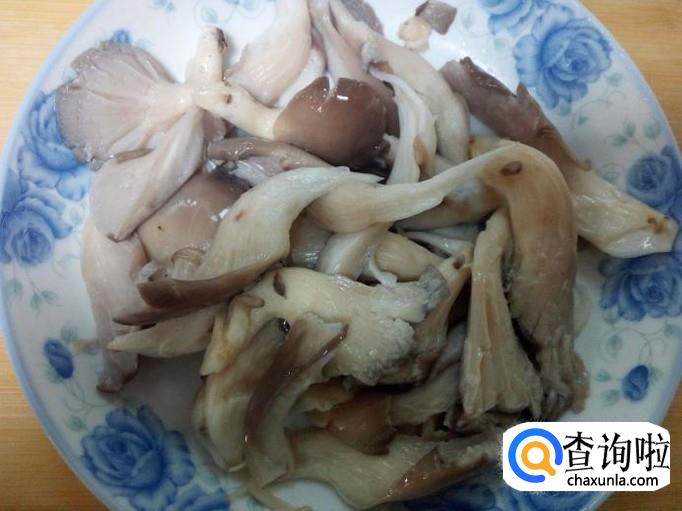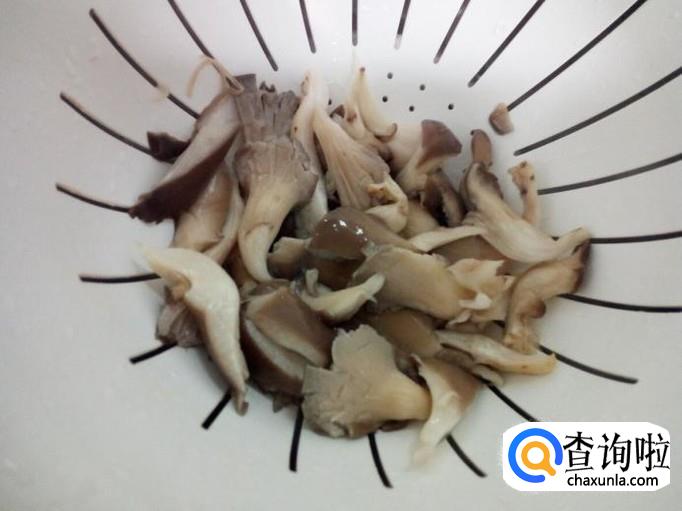 鲜蘑用水清洗干净,控干水分,用手撕成片。