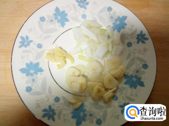 猪肉用水冲洗干净,控干水分,切成片。切好葱,姜,蒜备用。