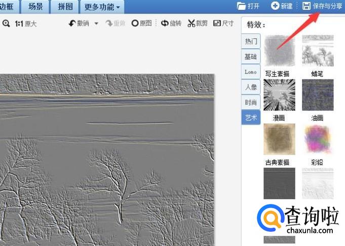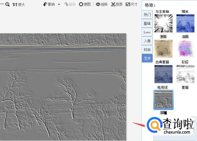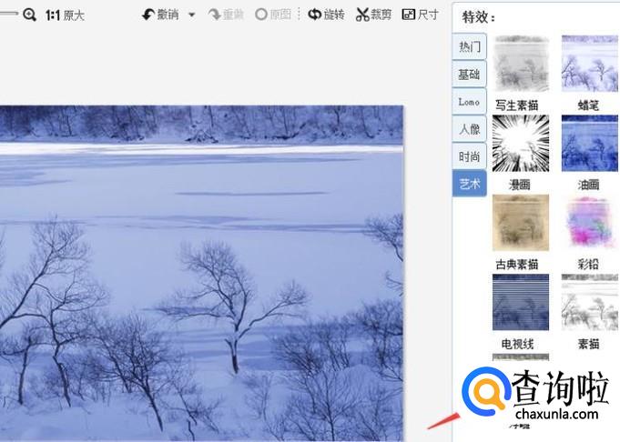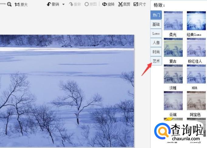 在打开的图片界面右边,找到艺术点一下。