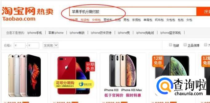 然后搜索关键字【苹果手机分期付款】,就会出来一系列手机了,如下图所示: