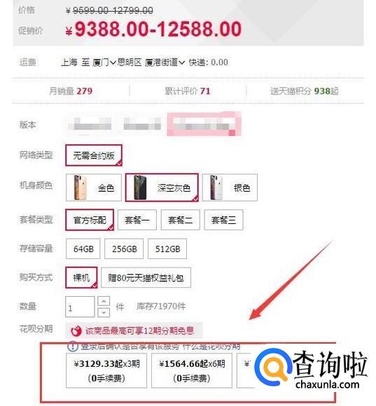 随便选择一部手机,点击进去看,在下方有【3期、6期、12期】的付款方式,如下图所示: