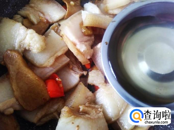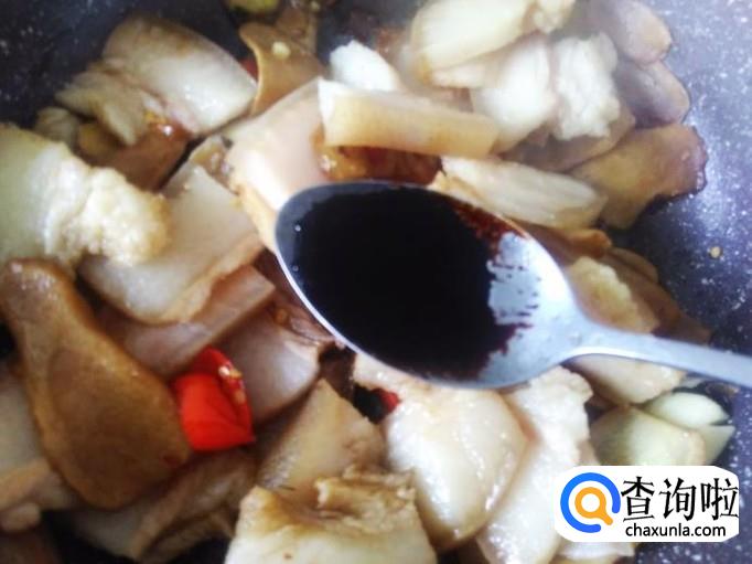 然后放猪头皮进去,加少量的盐、1勺生抽。