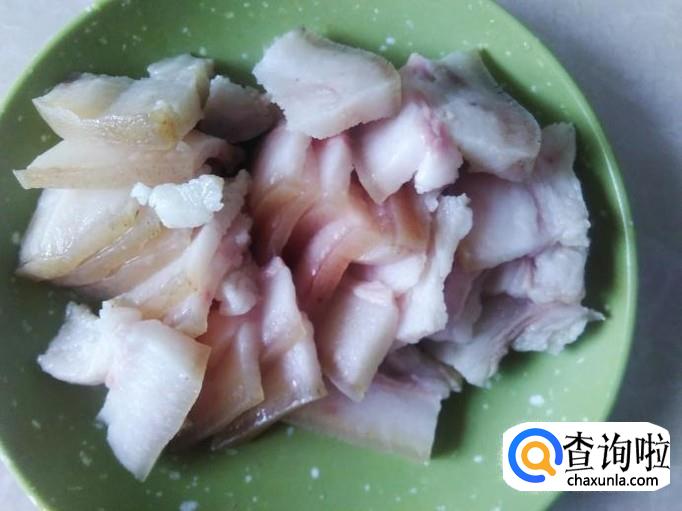 首先把灼过水的猪头皮切成薄片,嫩姜也清洗干净切成薄片。