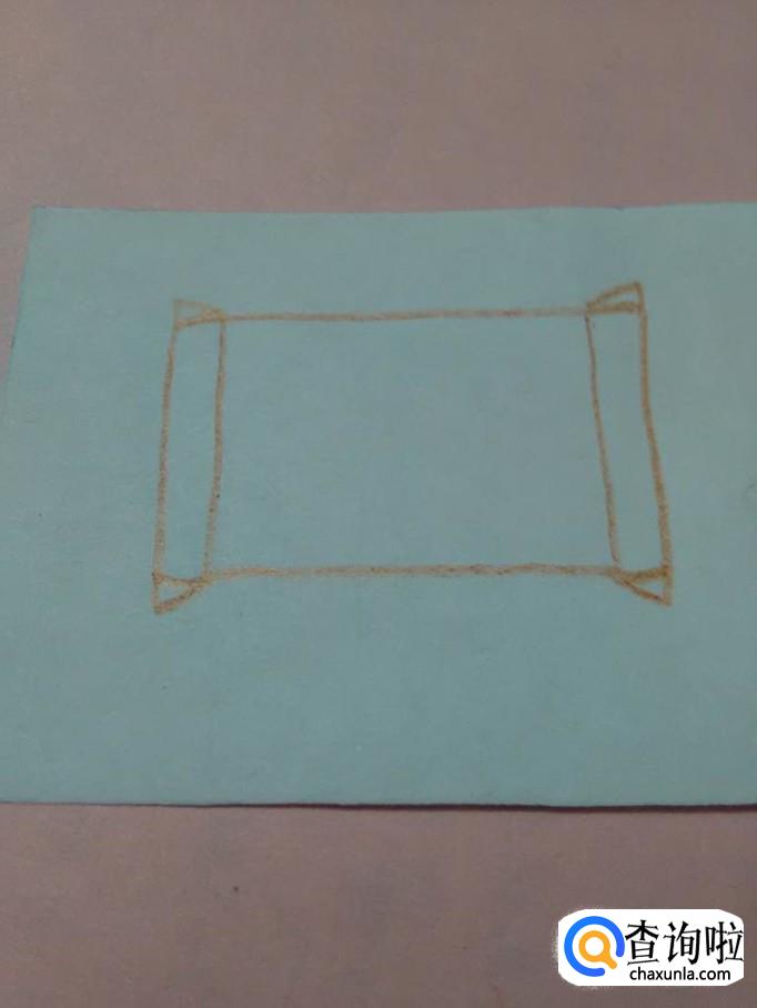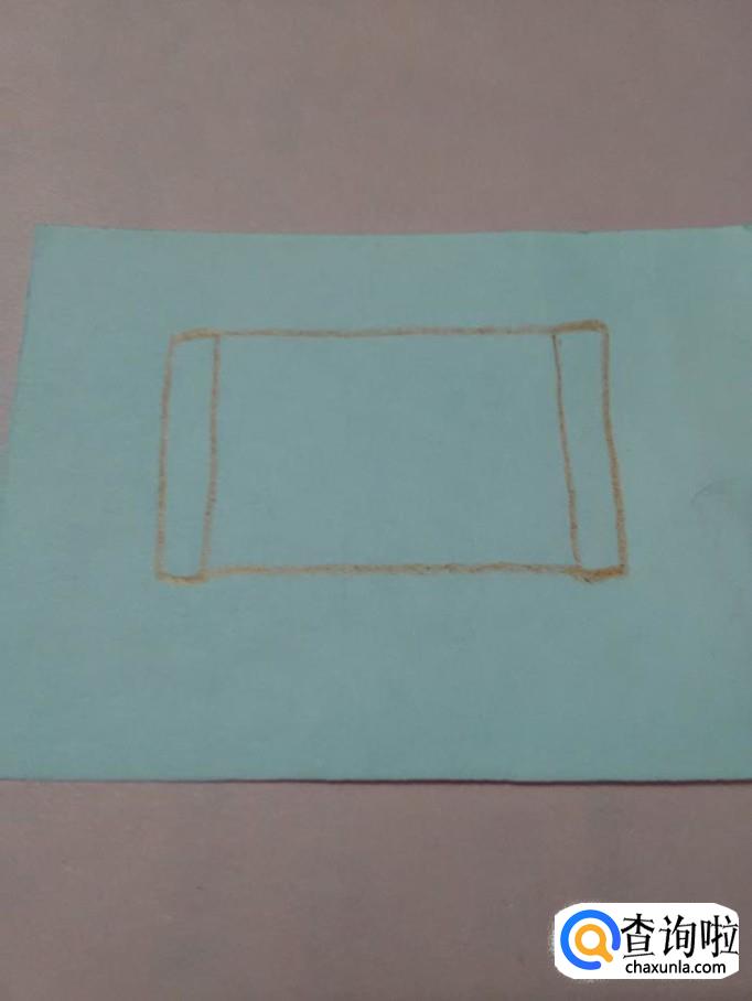 先用棕色笔在纸上画一个长方形,表示中间展开的纸。