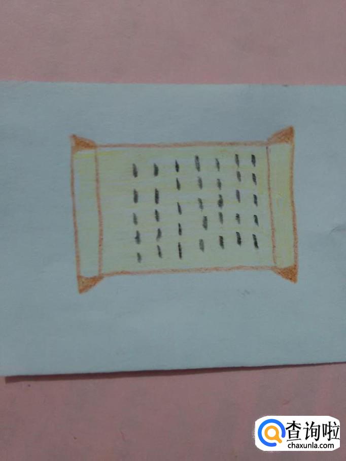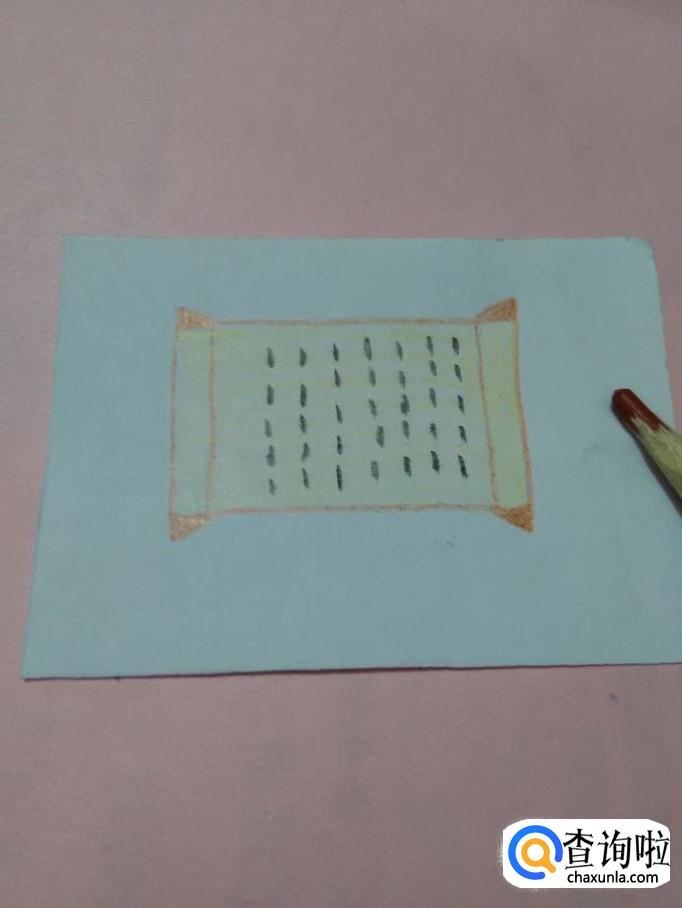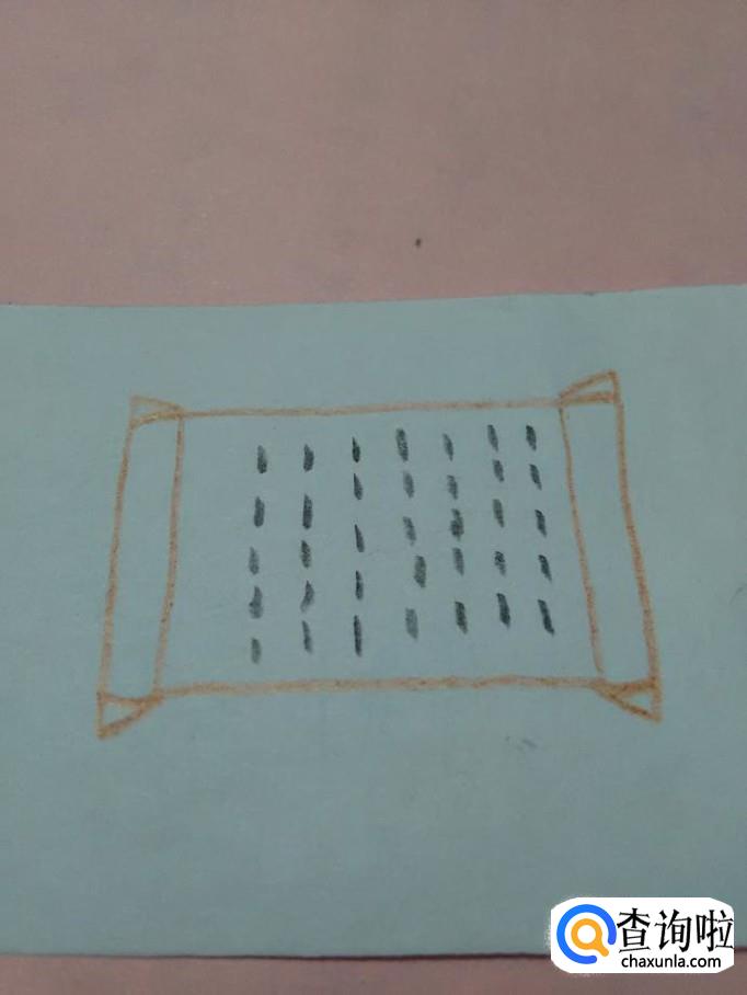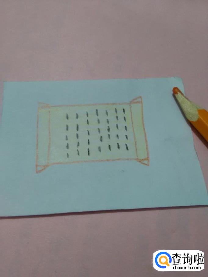 用黑笔在中间的长方形中画许多竖向的、短的直线,表示书卷上的字。