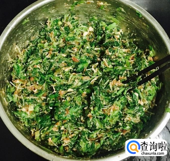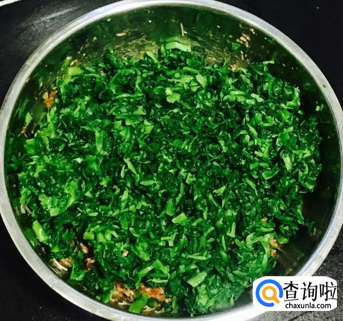 剁碎后的小白菜再挤一下水分放入肉馅中再次搅拌均匀即可