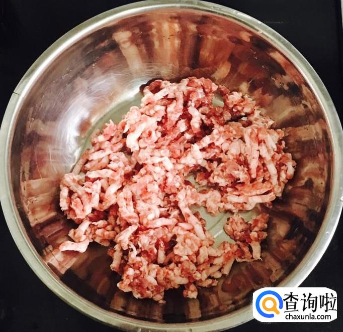 猪肉肥三瘦七剁成肉泥放入容器中,加入适量的花生油、香油、料酒、蚝油、盐、十三香用搅拌均匀