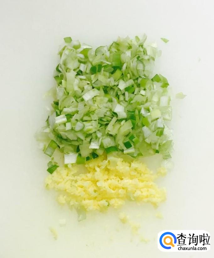 葱、姜剥去外皮清洗干净,分别剁成葱、姜末备用