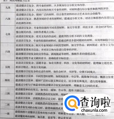 英语能力等级分为了9个等级,有三个阶段。其中包括了基础,提高,掌握三种。根据多种综合能力综合划分的。