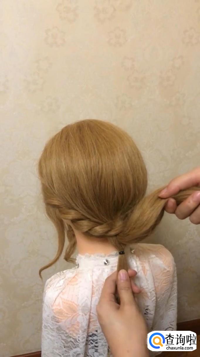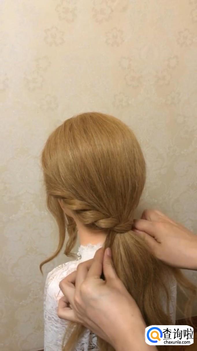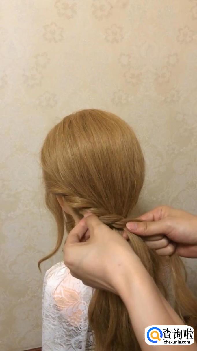 将两缕头发交换,扭成麻花状,直至扭到扎发的位置。