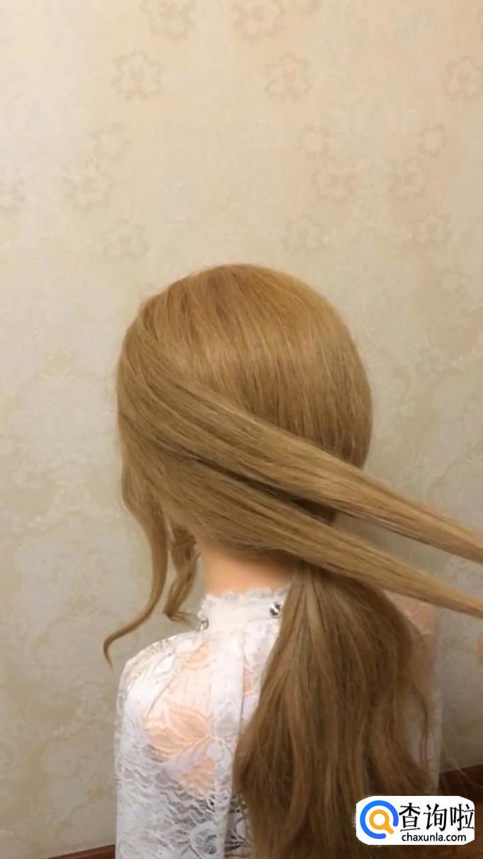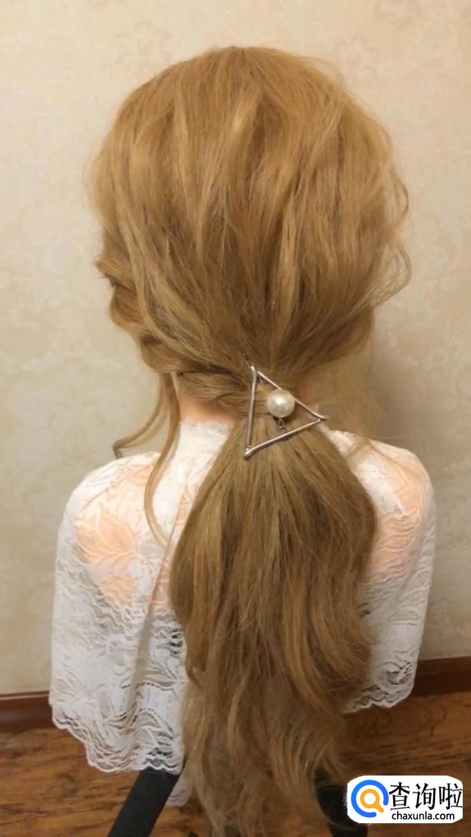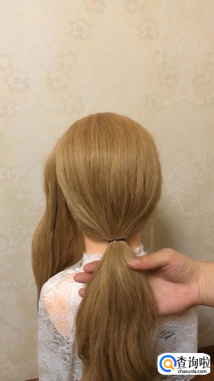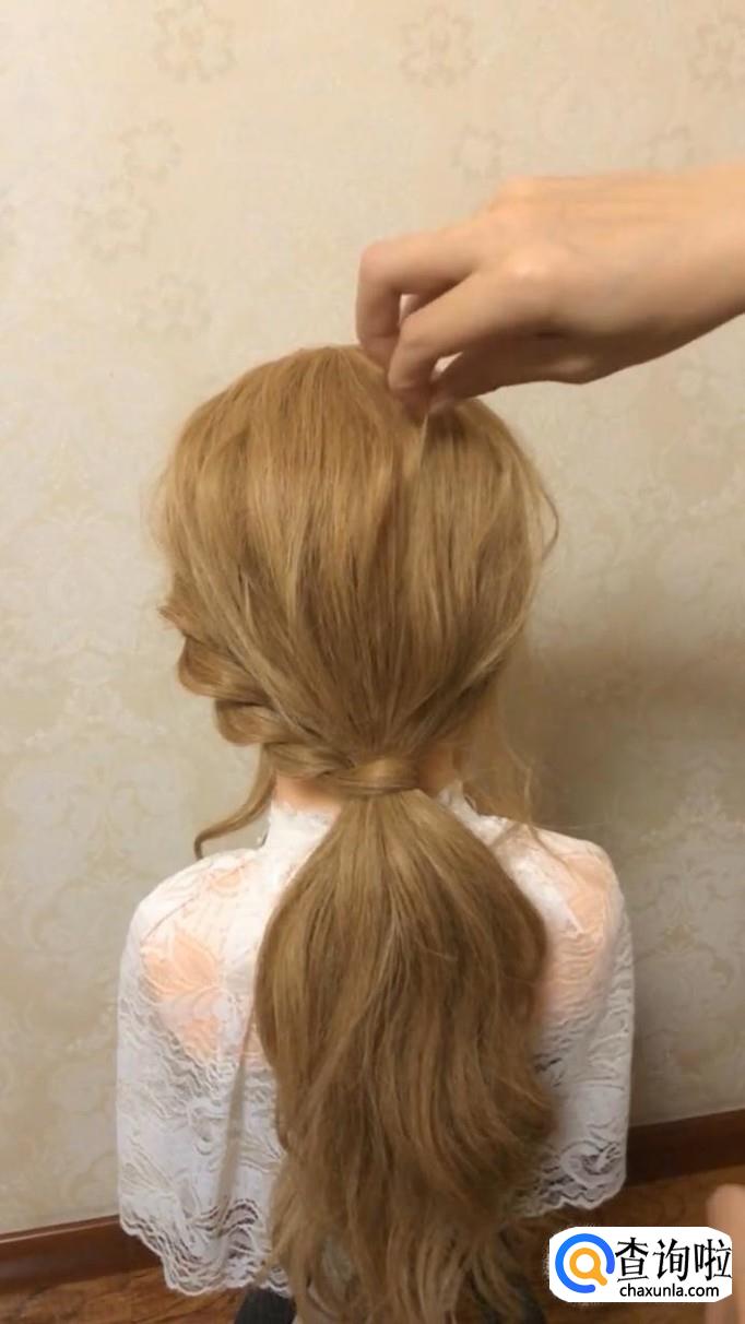 扎完后,在头发的头部轻轻扯出少许,使发型更蓬松、自然。