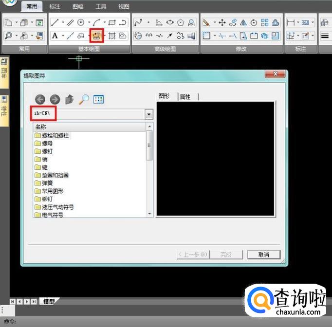 点击“提取图符”按钮,弹窗中有个目录,里面的图形都是国标的标准件;