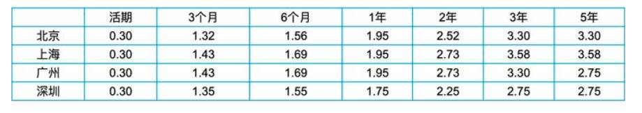 工商银行挂牌利率会略高于官网利率,以北京、上海、广州、深圳这四个城市的实际挂牌利率,数据如下: