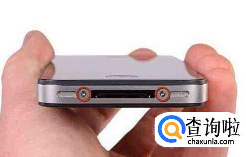 我们先用小号螺丝刀把苹果手机喇叭口的两颗螺丝给拆下来,然后用吸盘吸住手机屏幕,用力将手机屏幕给卸下来。