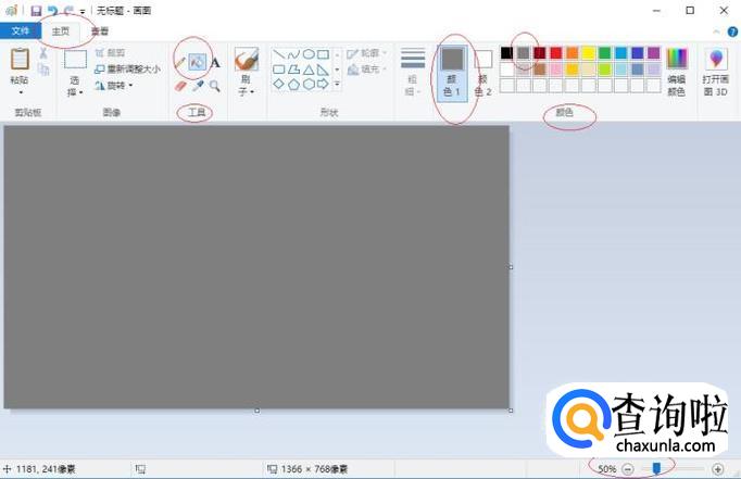 选择"主页→工具、颜色"功能区,点击"用颜色填充、灰色"图标设置桌面颜色。