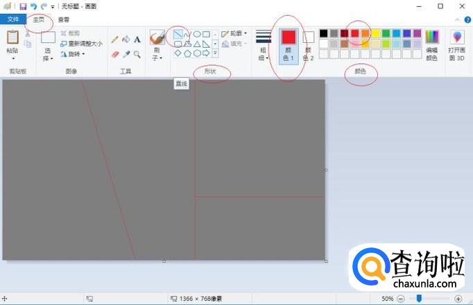 选择"主页→形状、颜色"功能区,点击"直线、灰色"图标设置桌面区域。