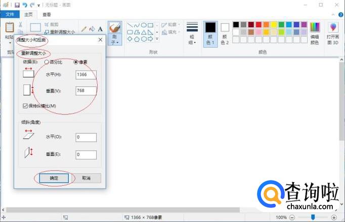 弹出"调整大小和扭曲"对话框,输入水平和垂直像素值。