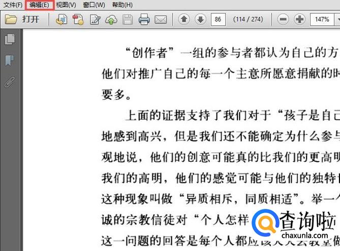 首先,我们打开一个PDF文档,然后我们点击工具栏中的编辑;