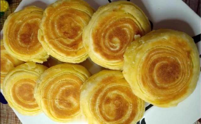 高桥松饼为上海市浦东新区高桥镇四大名点,因其入口酥松而得名。又因酥皮层次分明,每层薄如纸,别称千层饼。高桥松饼成品形如月饼,饼面呈金黄色,油润光洁,四周乳白色,底部不焦结发硬,酥皮层次分明,馅心无杂质,皮薄馅足,酥松香甜。具有葱香、麻香、脂香风味。油而不腻,甜而爽口,香气浓郁,皮酥馅糯,细软可口,余味无穷。
