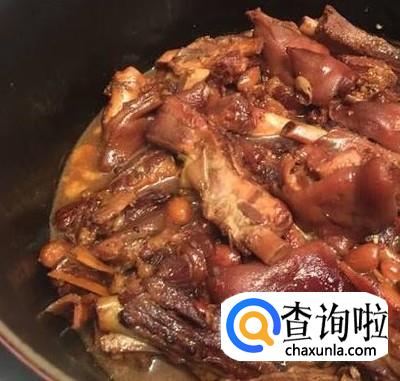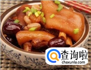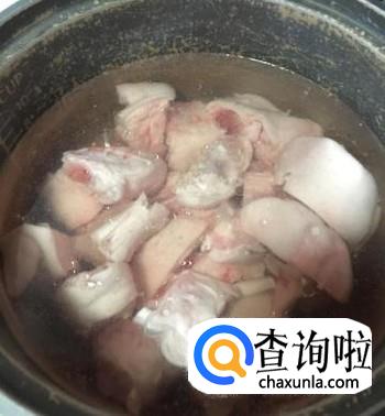 新鲜猪蹄洗净,砍成小块,放锅中,加水煮15分钟。