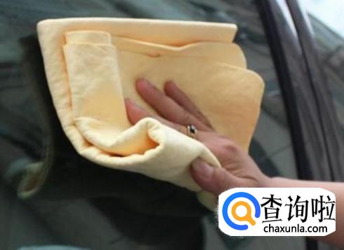 冲洗干净后,我们用干抹布将车身擦干,这样车子才不会有印子。