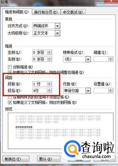 接着设定好你要的段前和段后,如下图所示。