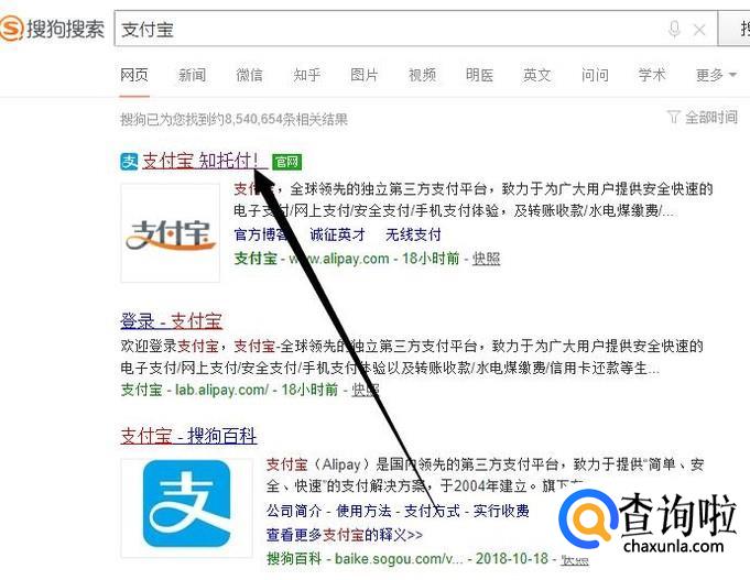 进入之后,搜索支付宝,点击并进入,如图所示。