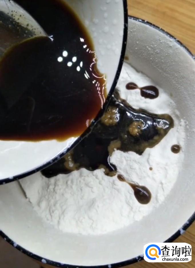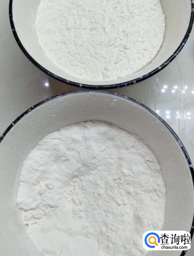 首先我们准备两碗面粉,将红糖中倒入适量的温水搅拌溶化成红糖水,倒入一碗面粉中,另一碗面粉中倒入适量的牛奶