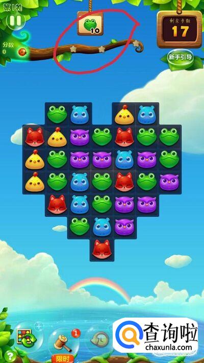 开始游戏以后,查看上方任务,任务是消除十只青蛙