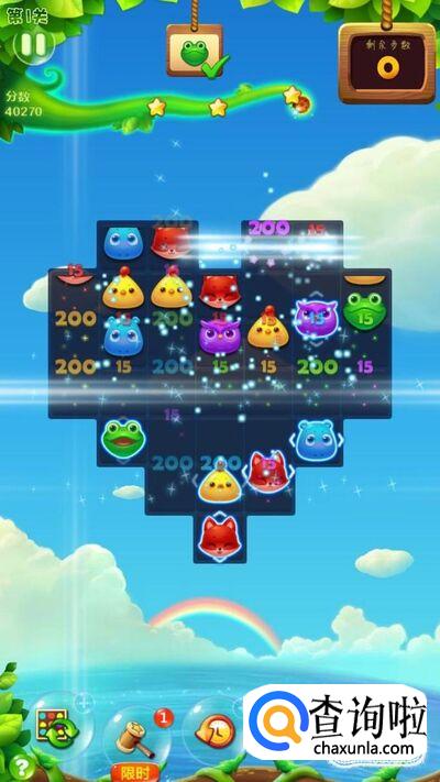 这时候随便消除两只青蛙,任务就完成了,小编这里完成任务以后还剩15步,而这15步就会当做奖励送给你加分,最后我们就通关了,而且是三星哦!
