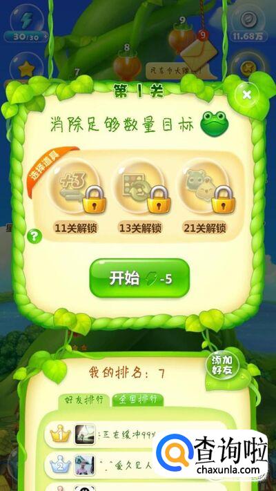 首先打开开心消消乐,点击第一关开始游戏(由于开心消消乐乐是随机游戏,意思是每次进入游戏任务是一样的但是小动物的排列不一样,小编这里以自己出现来讲解)