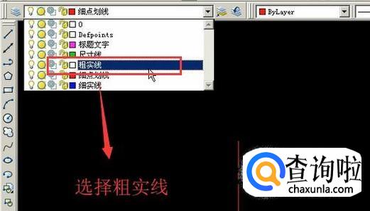 接下来我们将线条的形状转化为粗实线,如下图所示,粗实现主要是用来绘制图形边框用的