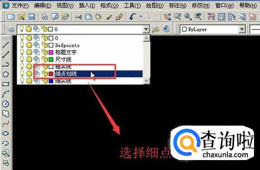 打开AutoCAD软件,选择顶部下拉框的线条形状为细点划线,如下图所示