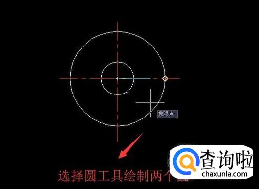 选择圆形工具,按住Shift键以十字交叉点为中心绘制两个圆形,如下图所示