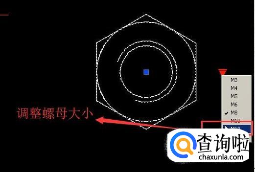 如果螺母大小不合适的话,我们可以点击右边的下箭头,选择M12或者M14来让螺母变大,如下图所示