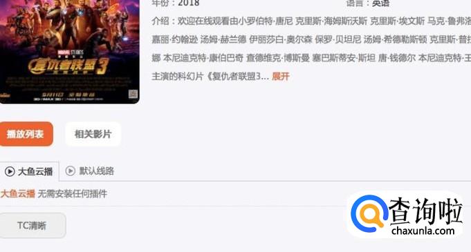 点击复联3进入,选择“播放列表”,然后点击TC清晰。