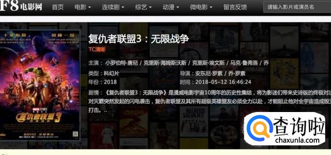 进入F8电影网首页之后,我们就能够看到很多电影,比如最新的复联3,复联3在视频网站就算上映了的话肯定都是要VIP才能够看的。