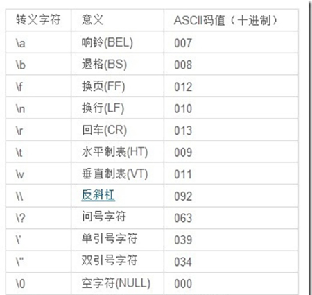 所有的ASCII码都可以用“”加数字(一般是8进制数字)来表示。而C中定义了一些字母前加""来表示常见的那些不能显示的ASCII字符,如,t,n等,就称为转义字符,因为后面的字符,都不是它本来的ASCII字符意思了。其中t所对应的意义是水平制表(HT) ,跳到下一个TAB位置。