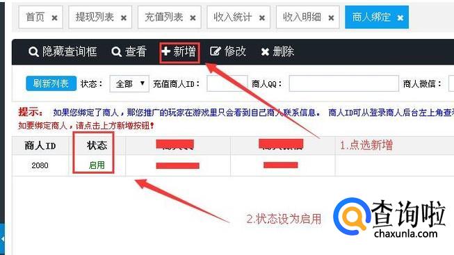 进入子页面后点选新增,启用商人ID,输入商人ID即可。