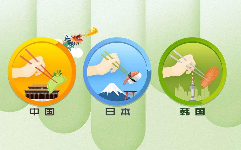 中日韩三国都是用筷子,但是相互之间有一些不同。