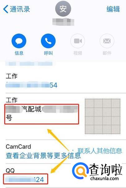 点击其中任意一个联系人,我们就能查看到他的手机号码,如果之前添加过通讯地址、邮箱、QQ等,这里也都会有显示;