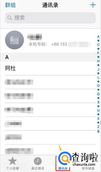将选项切换到"通讯录",然后可以看到目前我们手机里所有联系人的列表,如下图;