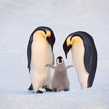 帝企鹅在南极严寒的冬季冰上繁殖后代,雌企鹅每次产1枚蛋,雄企鹅孵蛋。雄帝企鹅双腿和腹部下方之间有一块布满血管的紫色皮肤的育儿袋,能让蛋在环境温度低达零下40摄氏度的低温中保持在舒适的36摄氏度。