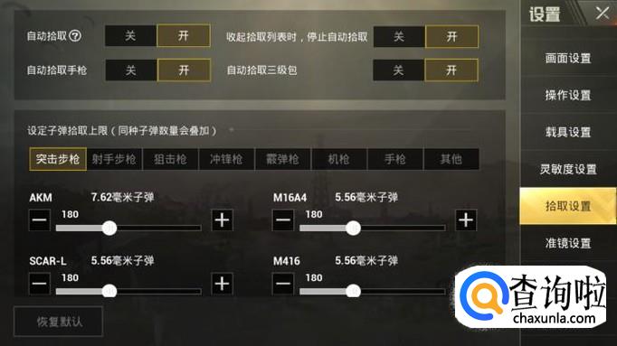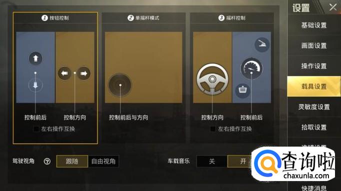 还有画面设置、载具设置、拾取设置这些你也可以根据自己的喜好来设置。