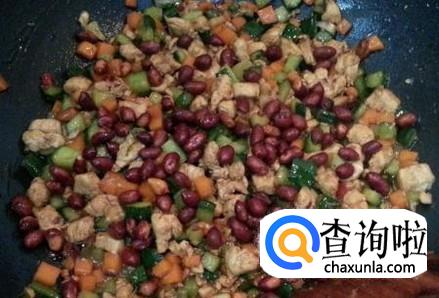 然后下炒好的花生米进去,翻炒均匀,熄火。非常美味的宫保鸡丁就做好了。