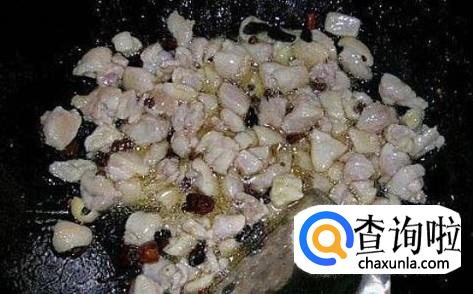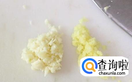 热锅下油,放蒜米、姜蓉进去爆香,然后放鸡胸肉进去,加适量的盐翻炒入味。
