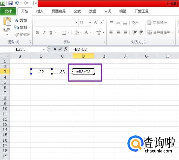 然后我们在33单元格后面输入=B3+C3,然后按回车键,这样就求出两数之和了;