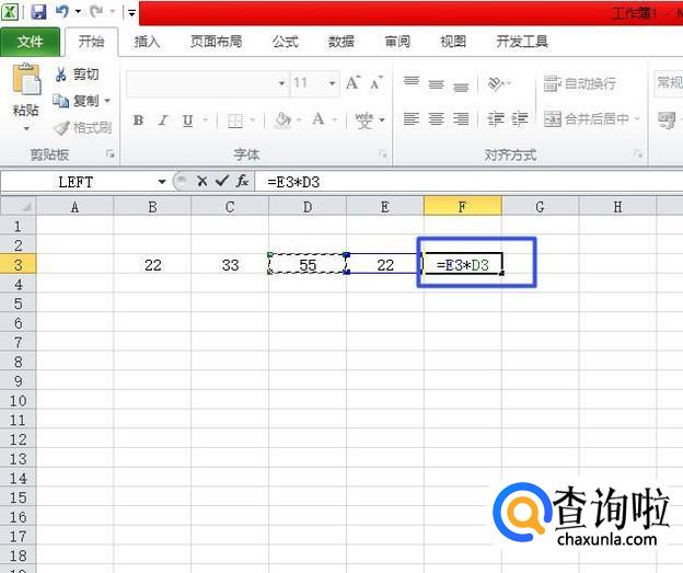 然后我们选中22后面的那个单元格,在里面输入=E3*D3,然后按回车键,这样就求出两数相乘之积了;