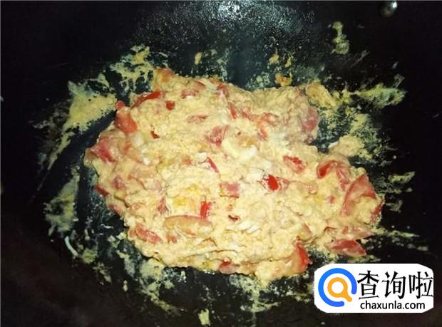 轻轻翻炒鸡蛋液,让鸡蛋和番茄融合在一起。